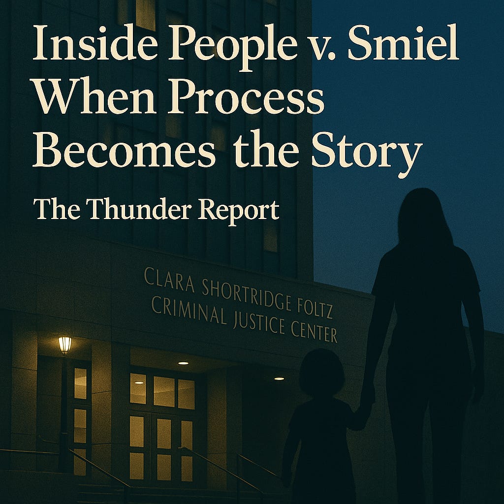 Months later, prosecutors filed the case after an investigative report from the L.A. County District Attorney’s Child Abduction Unit (CAU). Supporters contest Los Angeles venue and state that no warrant was shown when Ms. Smiel was arrested.